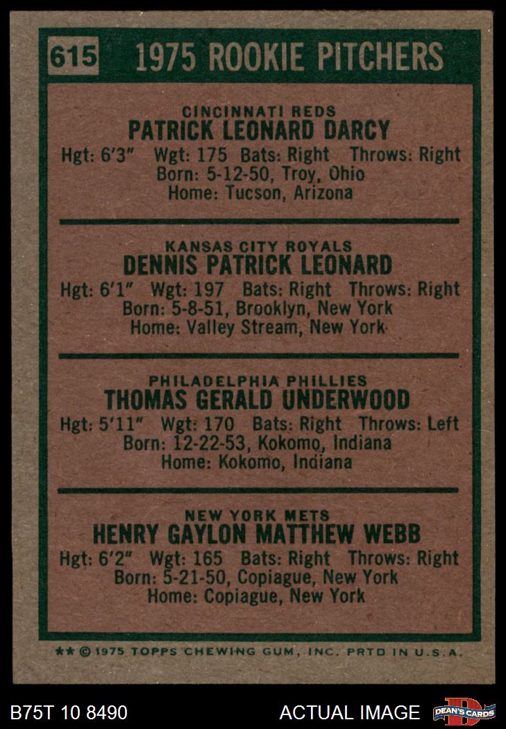1975 Topps #615 - Dennis Leonard / Tom Underwood / Pat Darcy / Hank Webb Rookie Pitchers 5 - EX