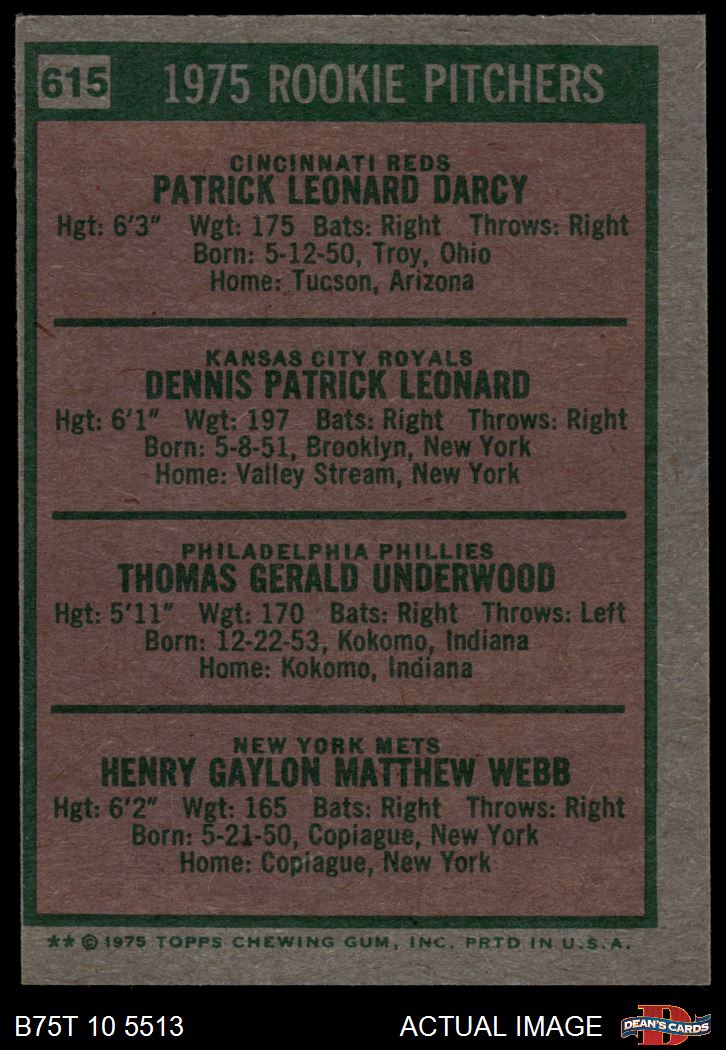 1975 1975 #615 - Dennis Leonard / Tom Underwood / Pat Darcy / Hank Webb Rookie Pitchers 6 - EX/MT