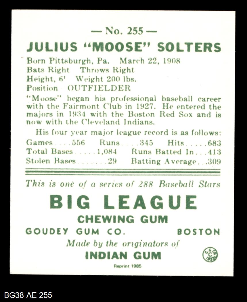 1938 Goudey Heads-Up Reprint #255 Julius Solters