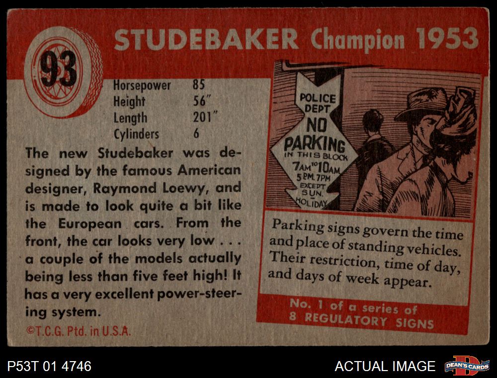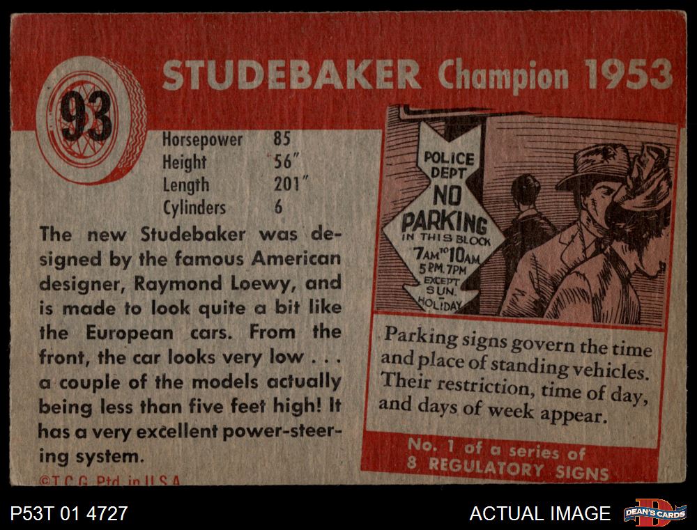1954 Topps World on Wheels #93 Studebaker Champion 1953 4 - VG/EX