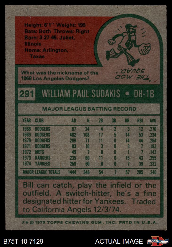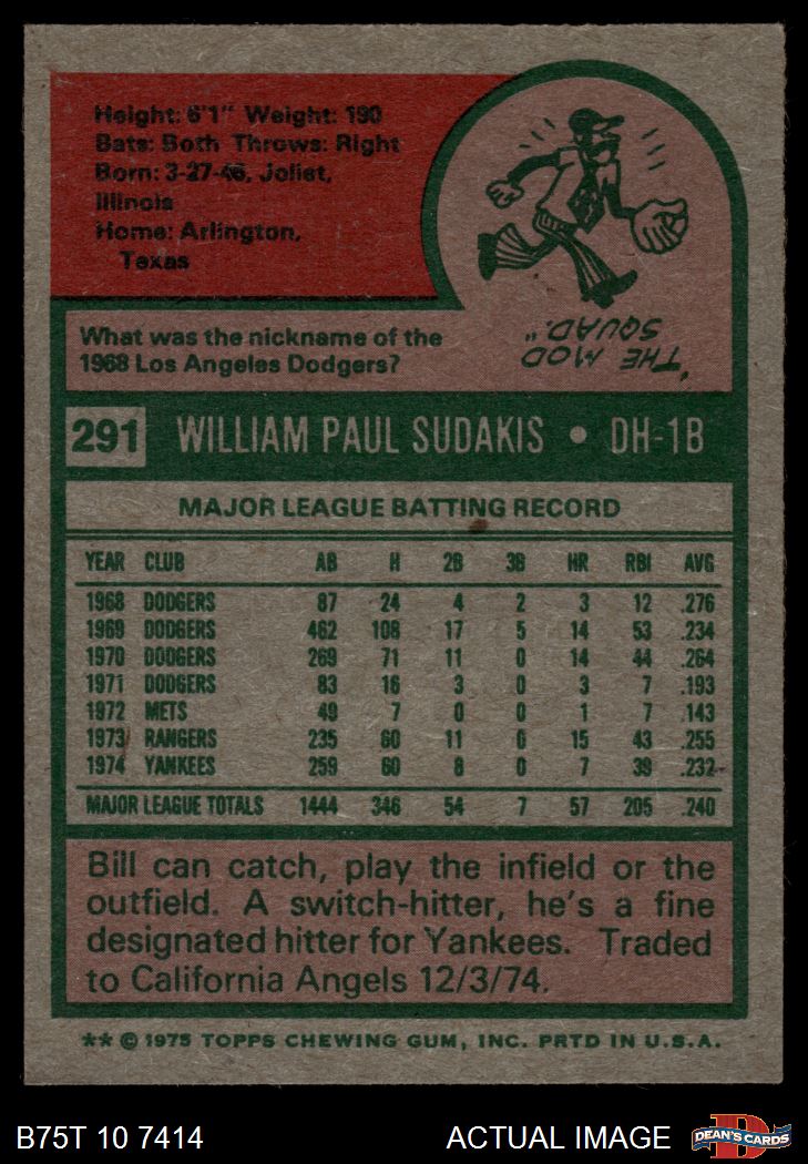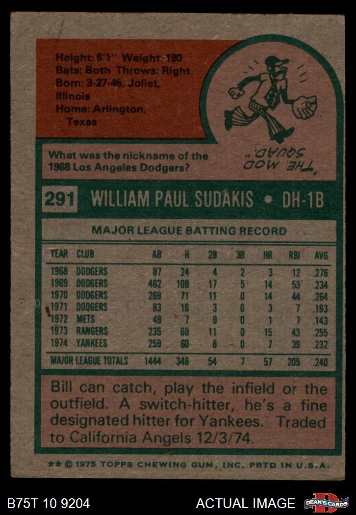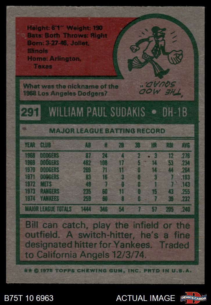 1975 Topps #291 Bill Sudakis 4 - VG/EX