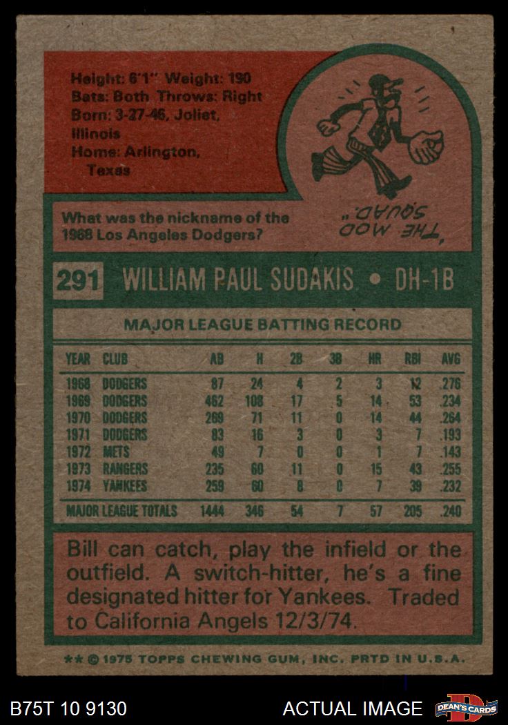 1975 Topps #291 Bill Sudakis 6 - EX/MT