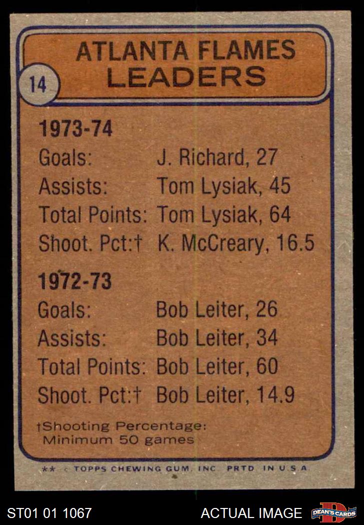 1974 Topps #14 - Jacques Richard / Tom Lysiak / Keith McCreary Flames Leaders 5 - EX