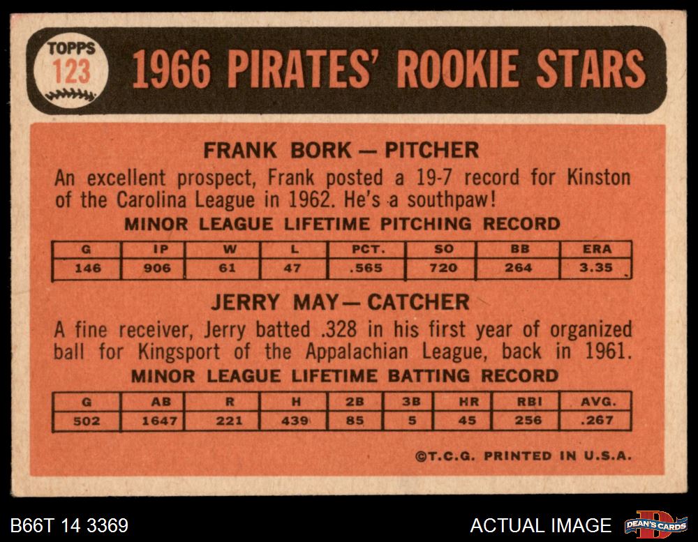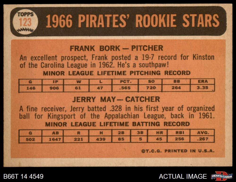 1966 Topps #123 - Jerry May / Frank Bork Pirates Rookies 5 - EX