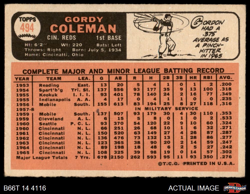 1966 Topps #494 Gordy Coleman