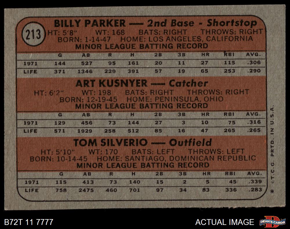 1972 Topps #213 - Art Kusnyer / Billy Parker / Tom Silverio Angels Rookies 4 - VG/EX