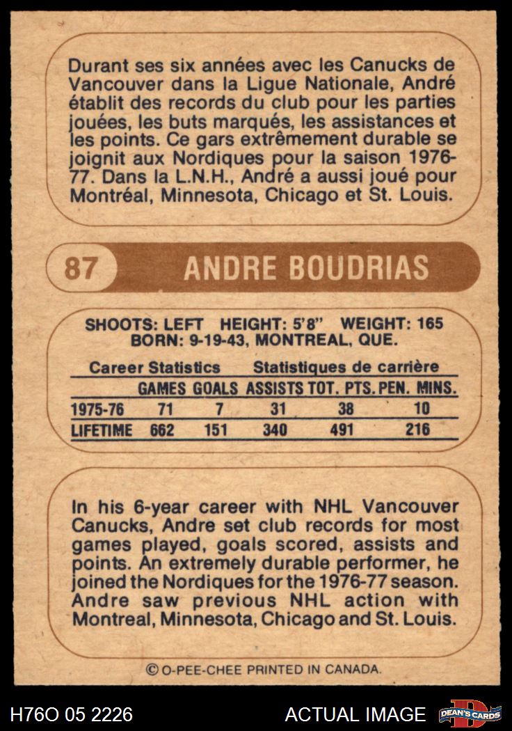 1976 O-Pee-Chee WHA #87 Andre Boudrias 7 - NM