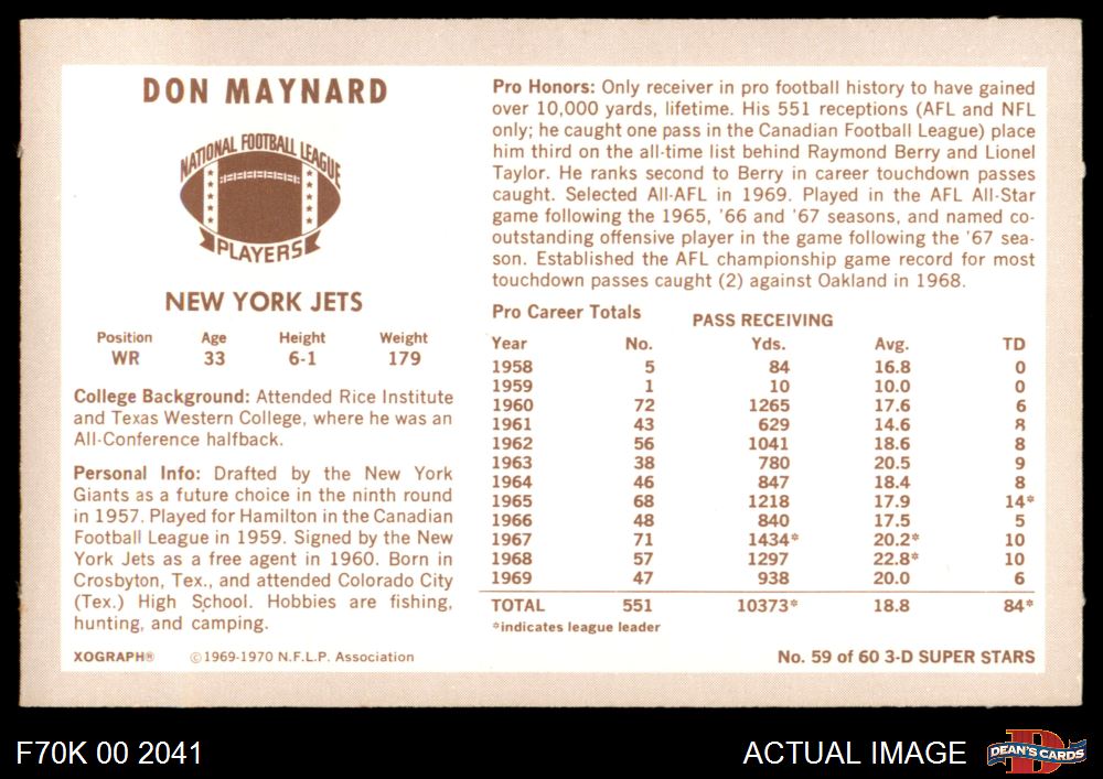 1970 Kellogg's #59 Don Maynard 3 - VG