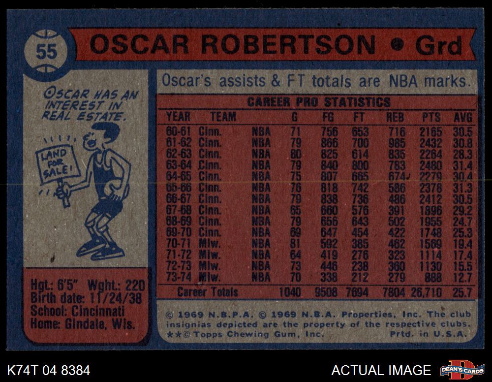 1974 Topps #55 Oscar Robertson 5 - EX