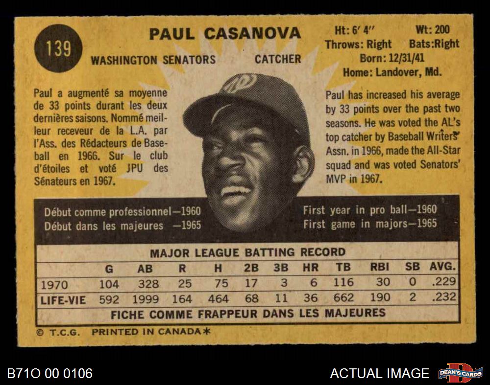 1971 O-Pee-Chee #139 Paul Casanova 6 - EX/MT