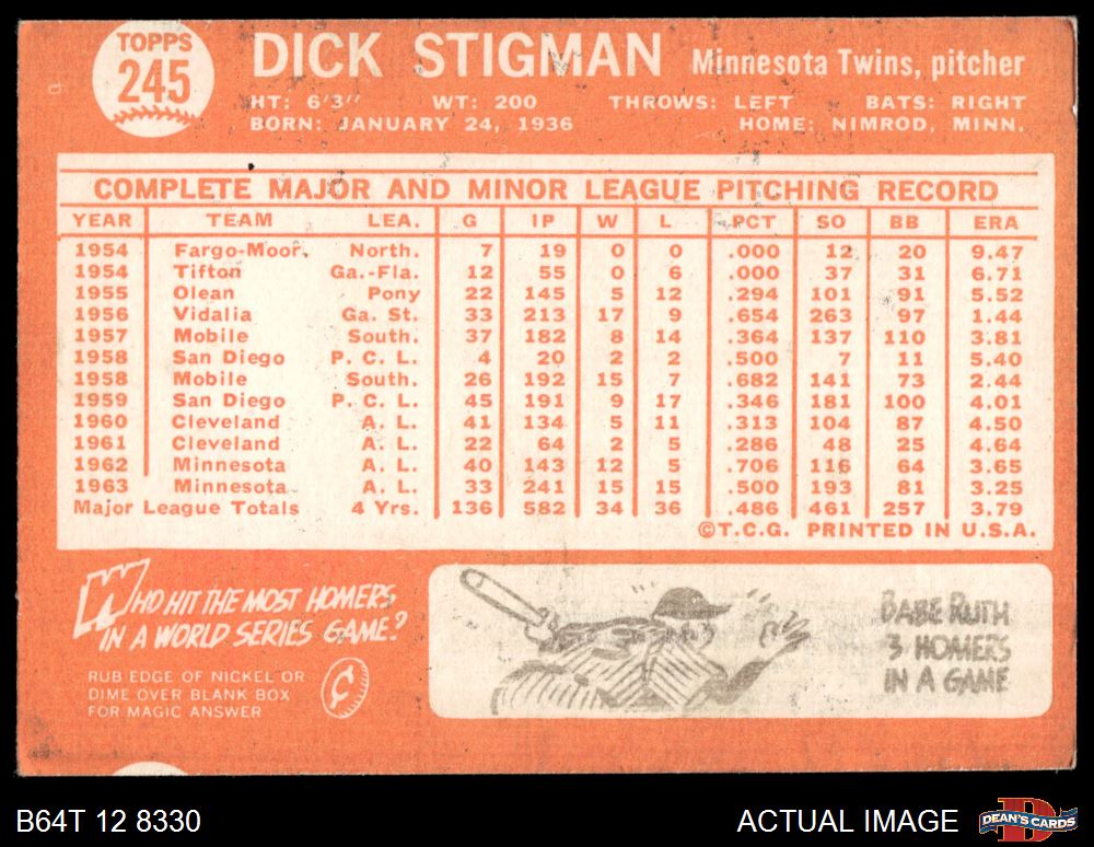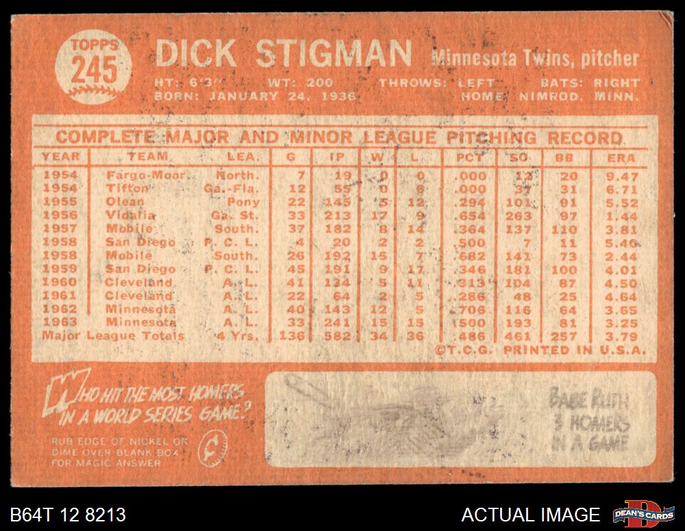 1964 Topps #245 Dick Stigman 2 - GOOD