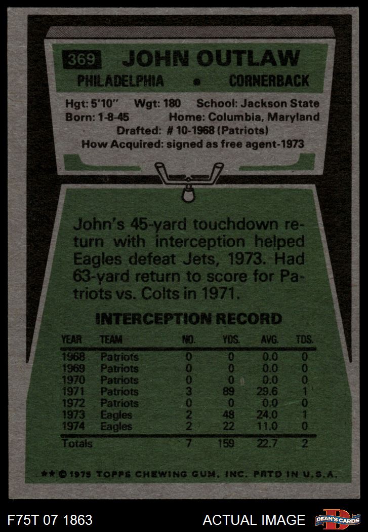 1975 Topps #369 John Outlaw 6 - EX/MT