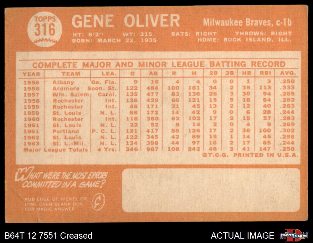 1964 Topps #316 Gene Oliver 2 - GOOD