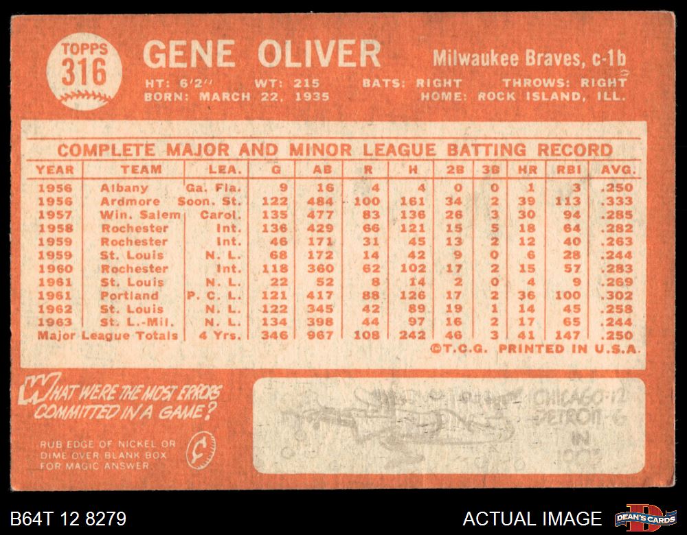 1964 Topps #316 Gene Oliver Front Thumbnail
