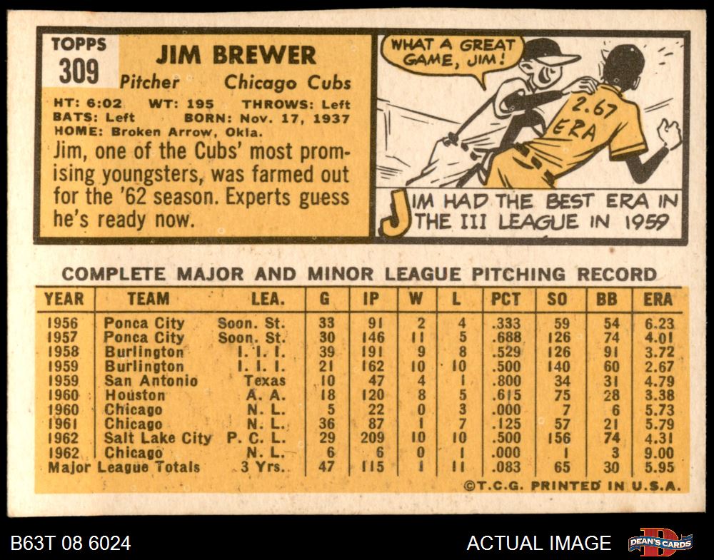1963 Topps #309 Jim Brewer 5.5 - EX+