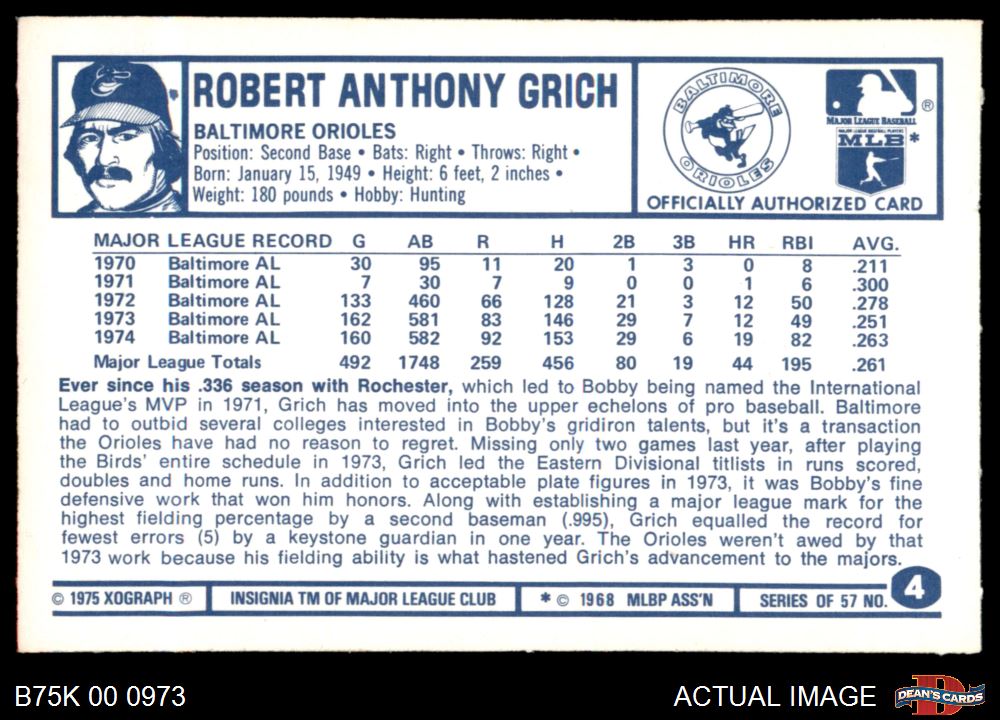 1975 Kellogg's #4 ERR Bobby Grich 8 - NM/MT
