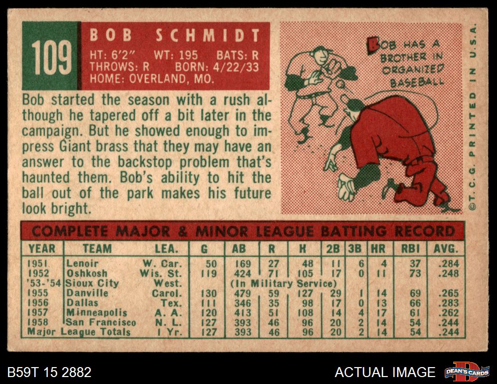 1959 Topps #109 Bob Schmidt 4 - VG/EX