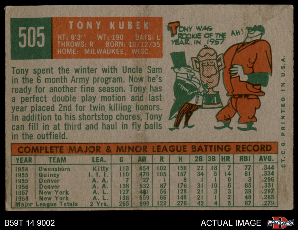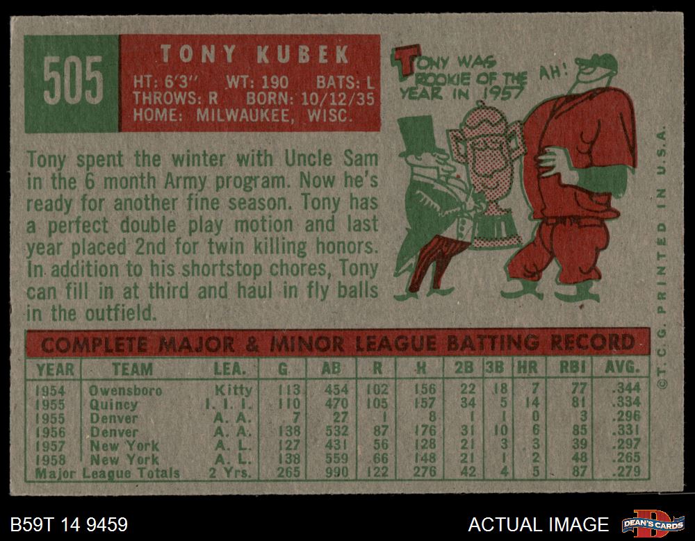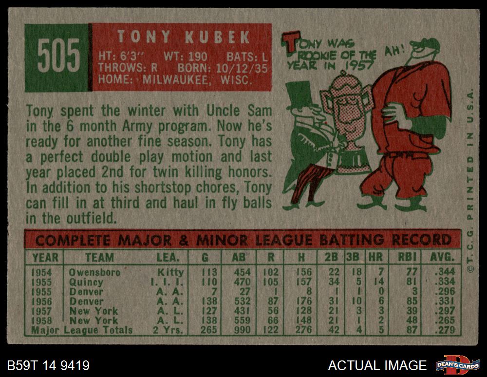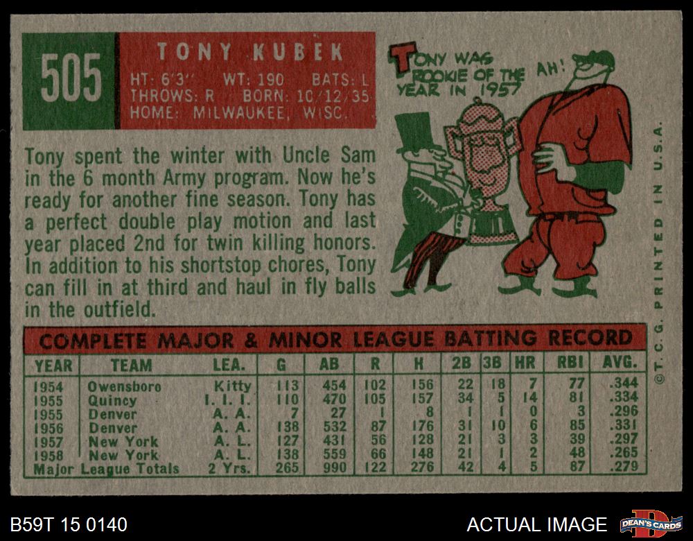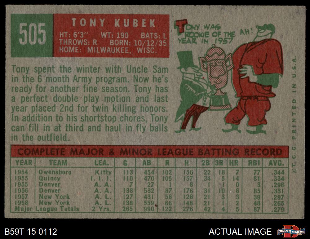 1959 Topps #505 Tony Kubek 4 - VG/EX