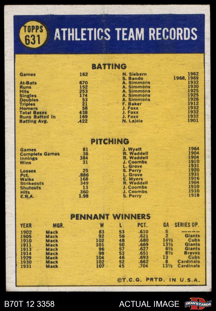 1970 Topps Baseball Cards (11,125 available)1970 Topps Athletics (472 available)