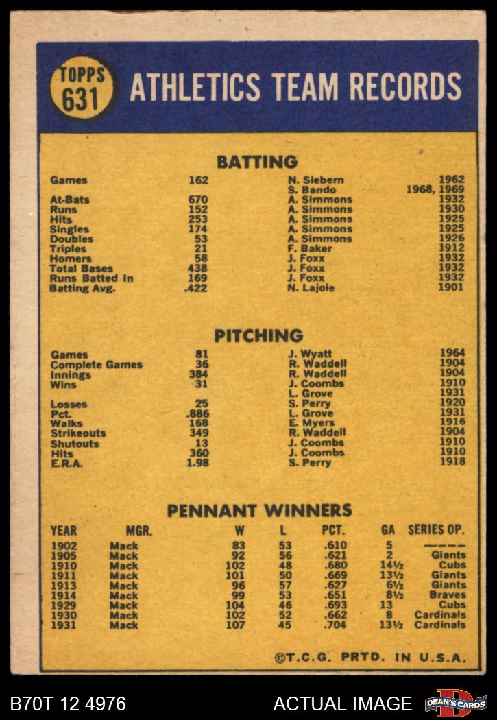 1970 Topps Baseball Cards (11,851 available)1970 Topps Athletics (509 available)