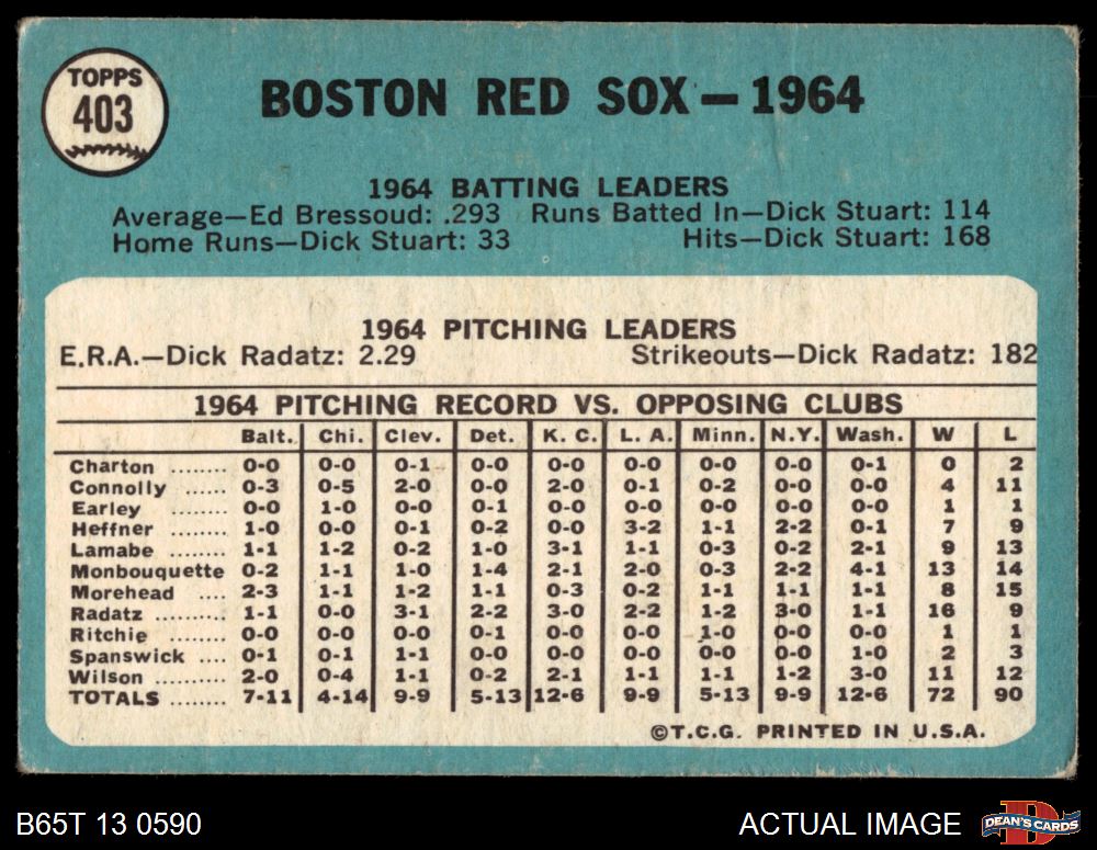 1965 Topps #403 Red Sox Team 2 - GOOD