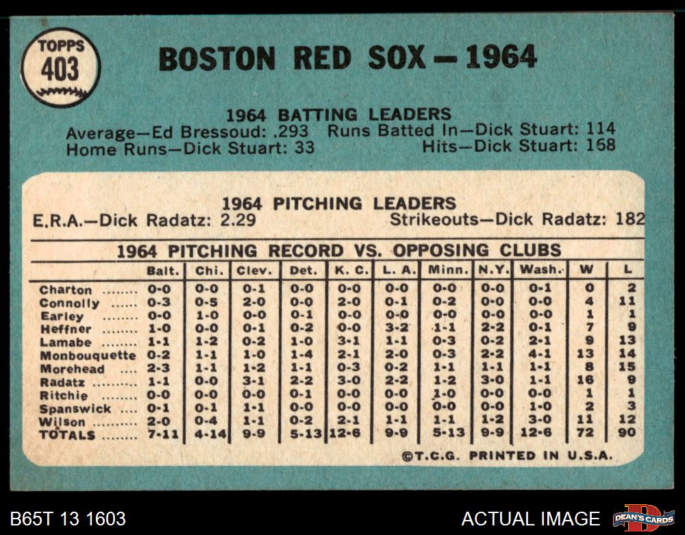 1965 Topps #403 Red Sox Team 3 - VG