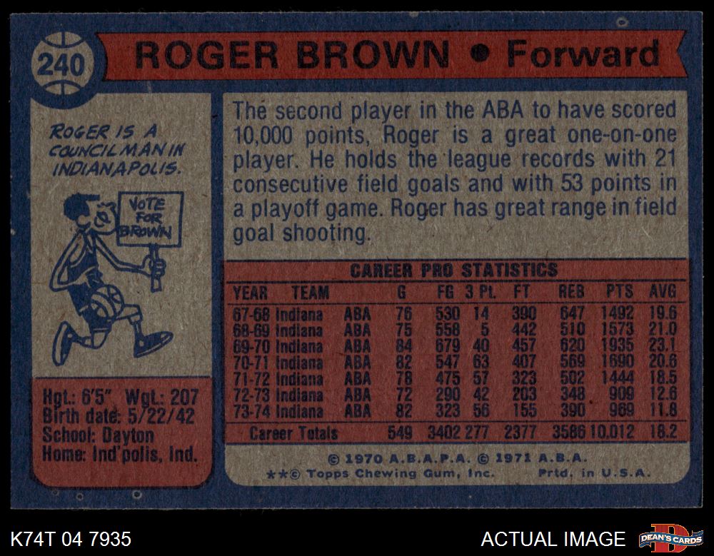 1974 Topps #240 Roger Brown 6.5 - EX/MT+