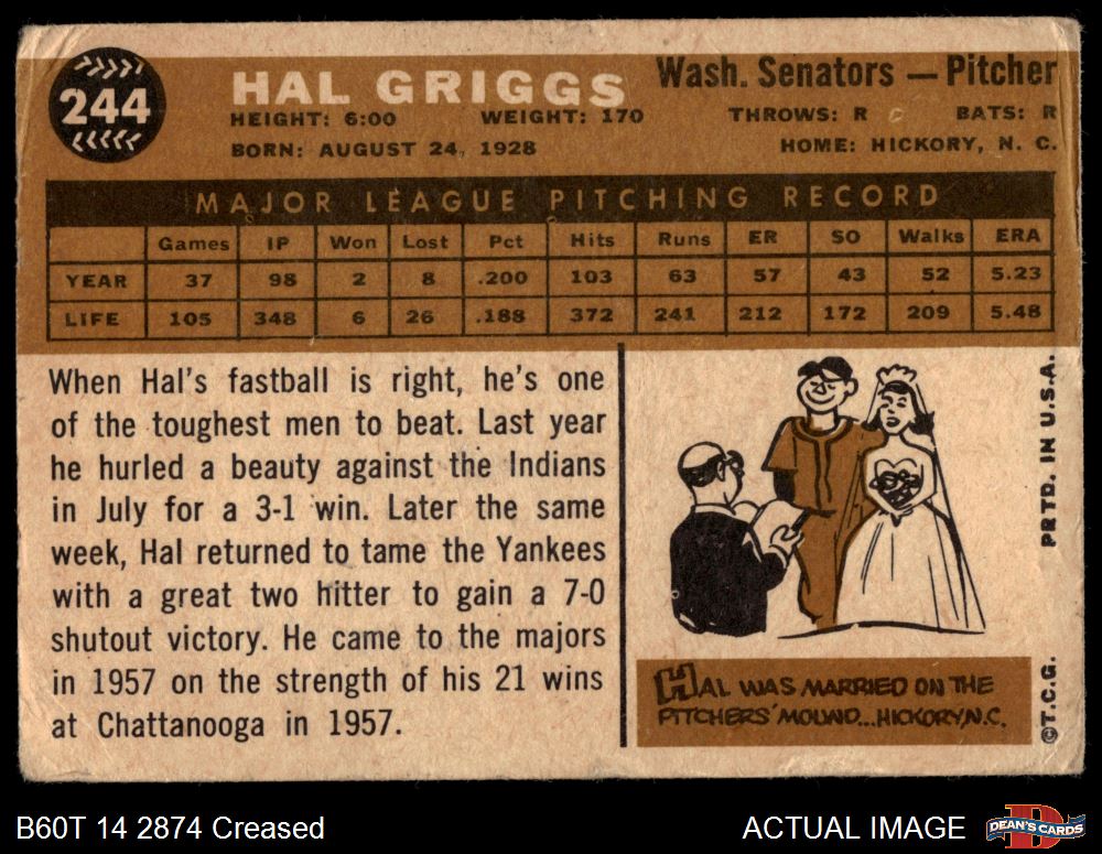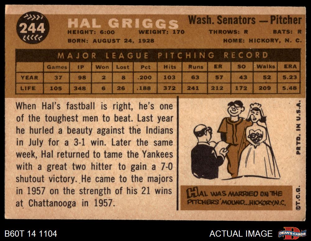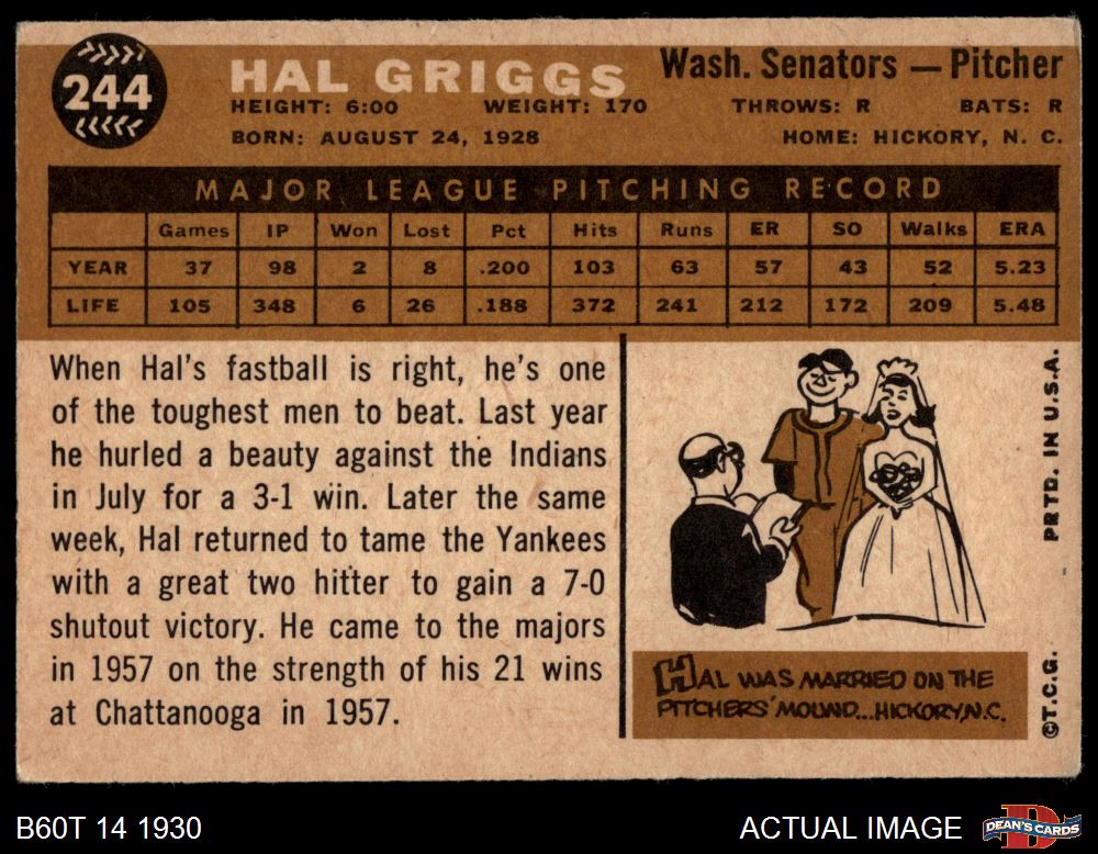 1960 Topps Baseball Cards (11,035 available)1960 Topps Senators (769 available)