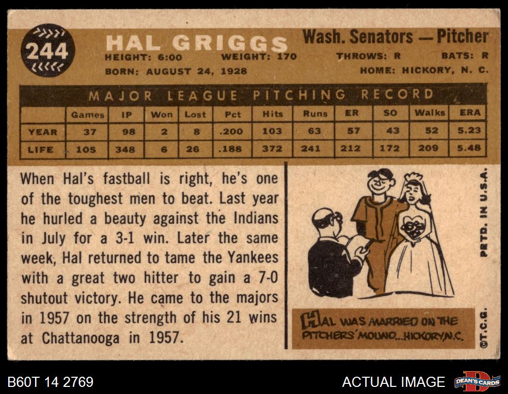1960 Topps #244 Hal Griggs 3 - VG