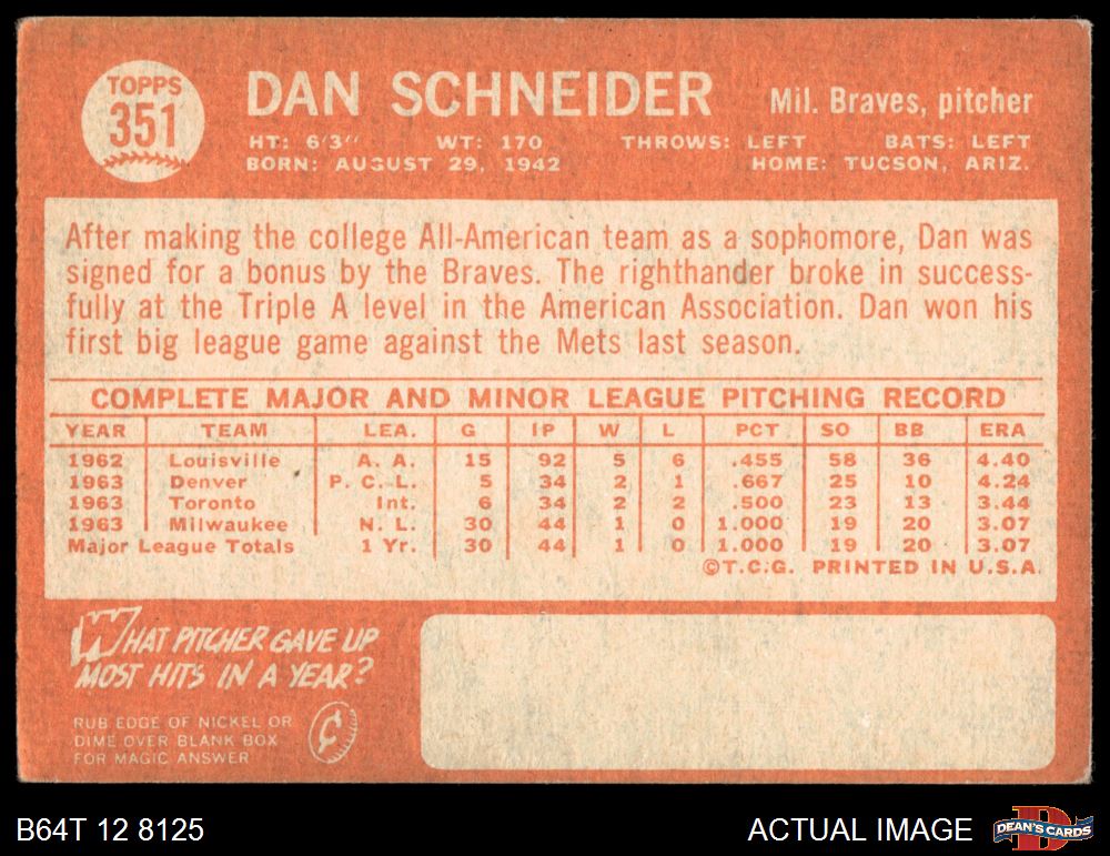1964 Topps #351 Dan Schneider 2 - GOOD