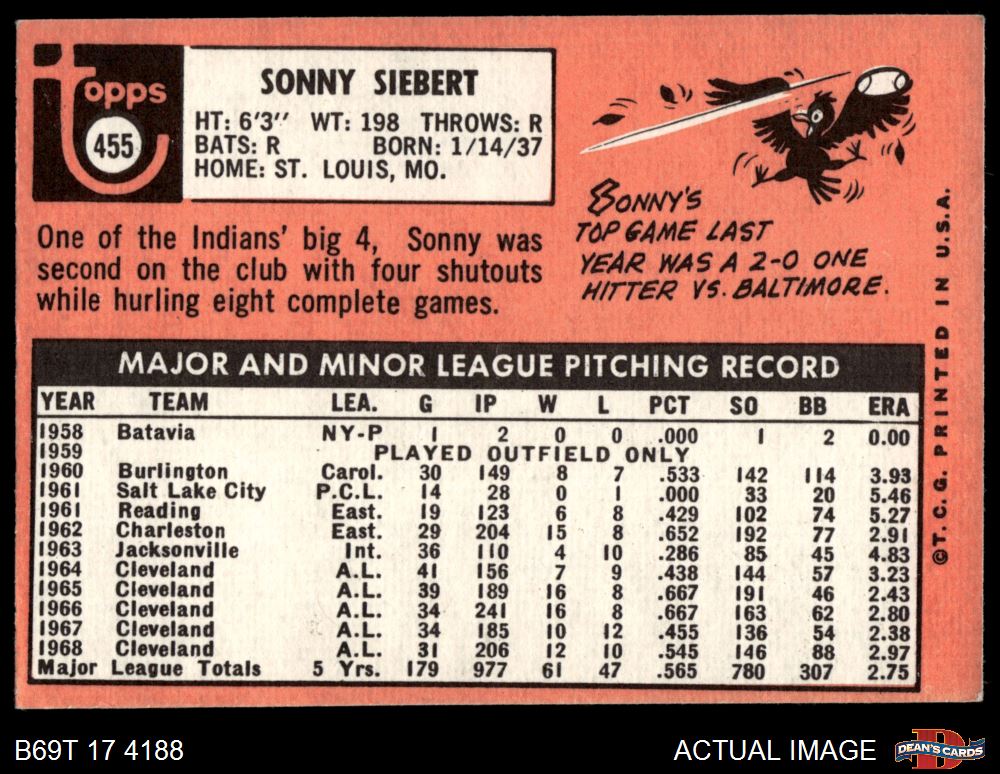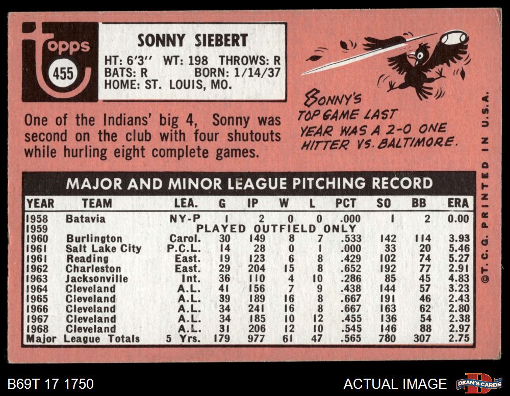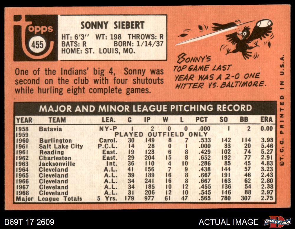 1969 Topps #455 Sonny Siebert 4 - VG/EX