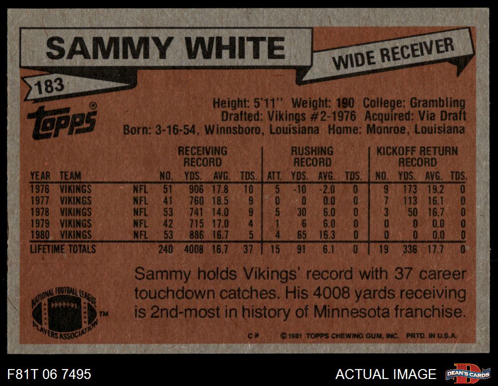 1981 Topps #183 Sammie White 3 - VG