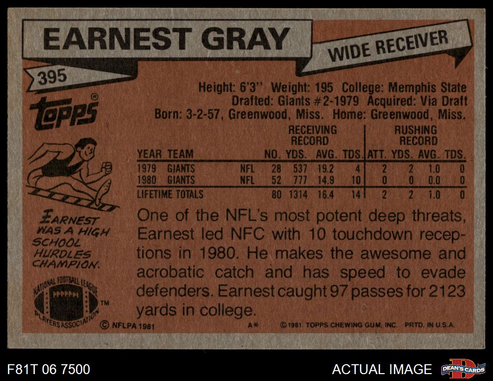 1981 Topps #395 Earnest Gray