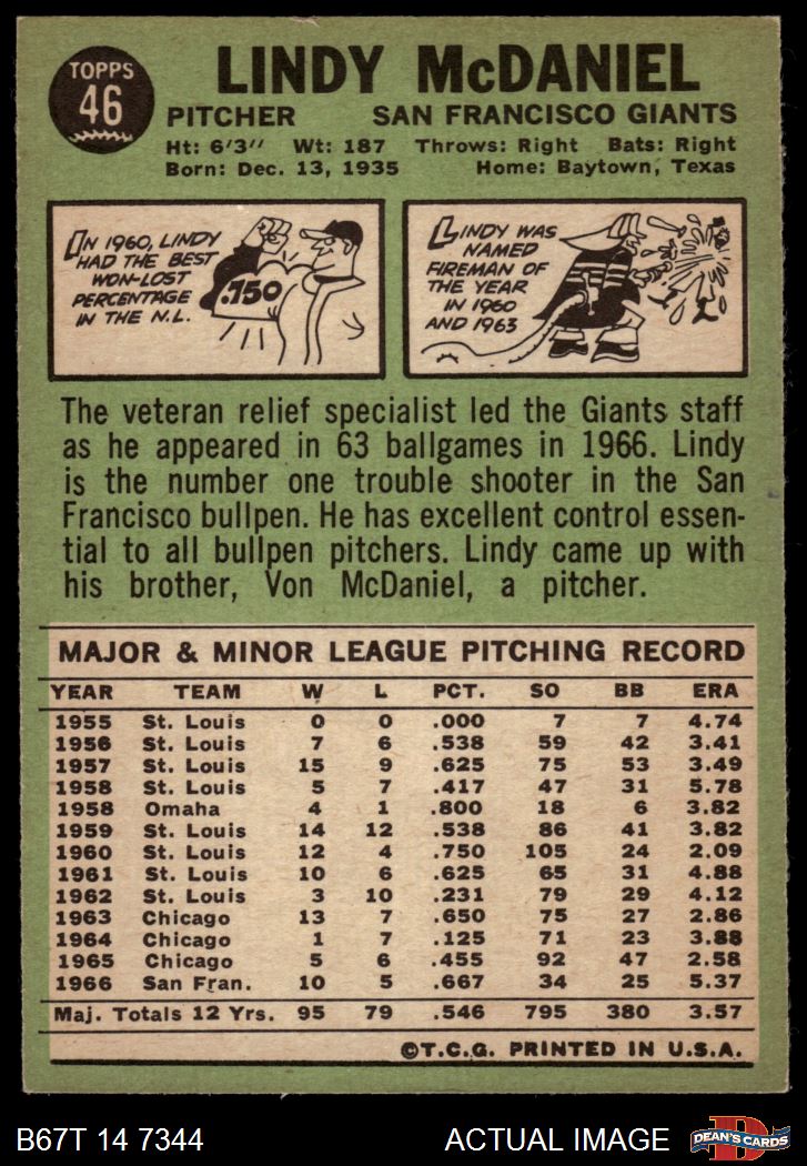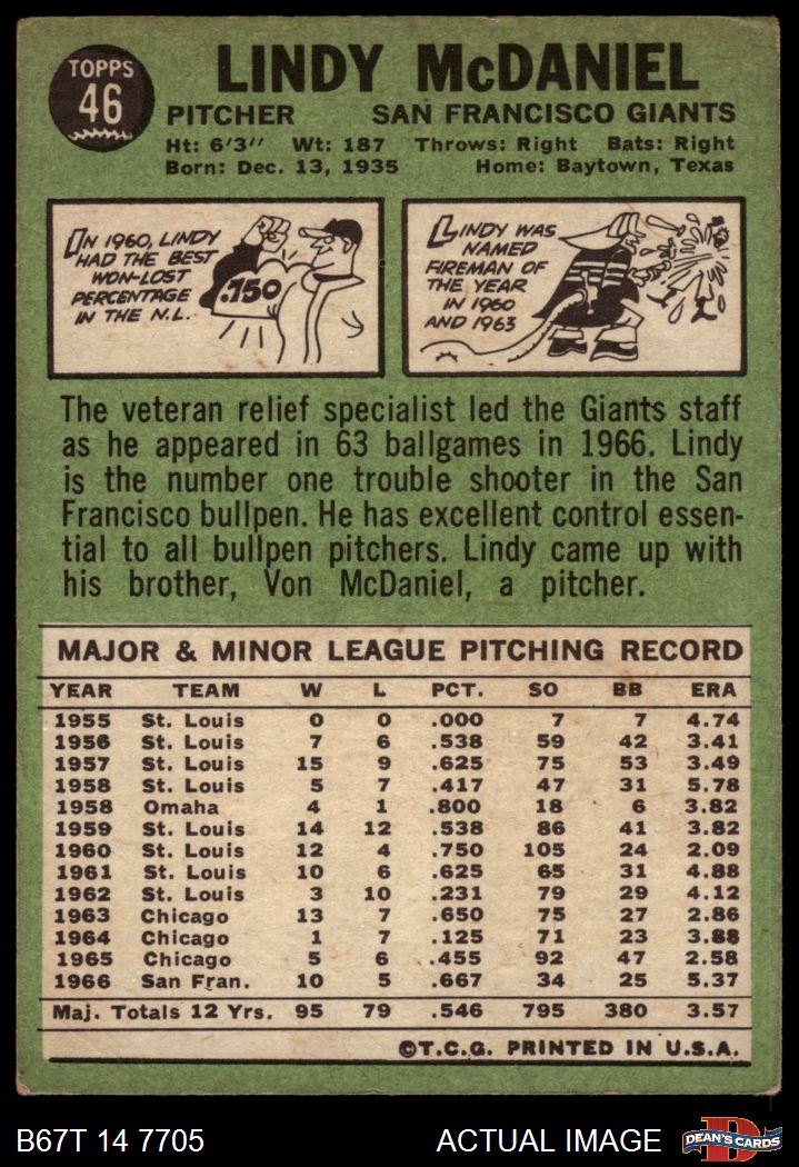 1967 Topps #46 Lindy McDaniel