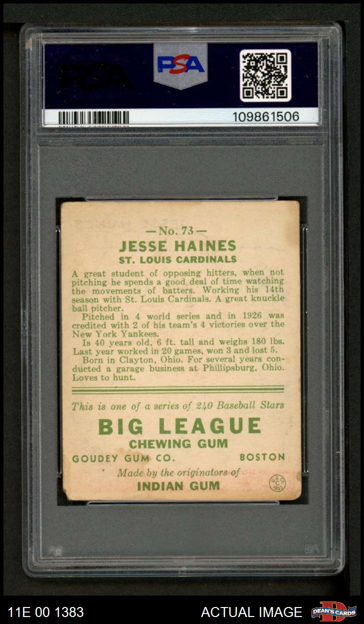 1933 Goudey #73 Jesse Haines PSA 1.5 - FAIR