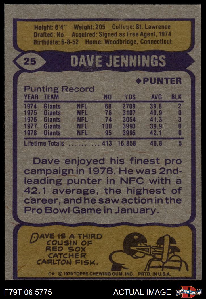 1979 Topps #25 Dave Jennings