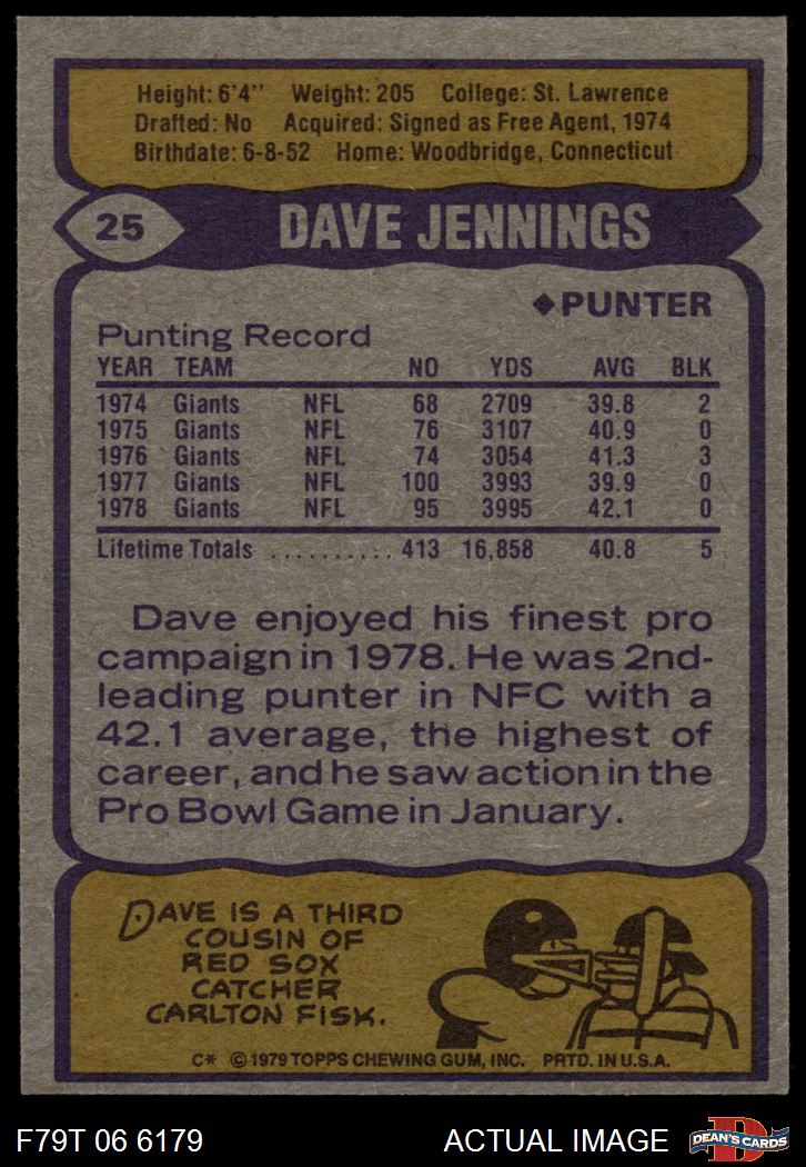 1979 Topps #25 Dave Jennings 6 - EX/MT