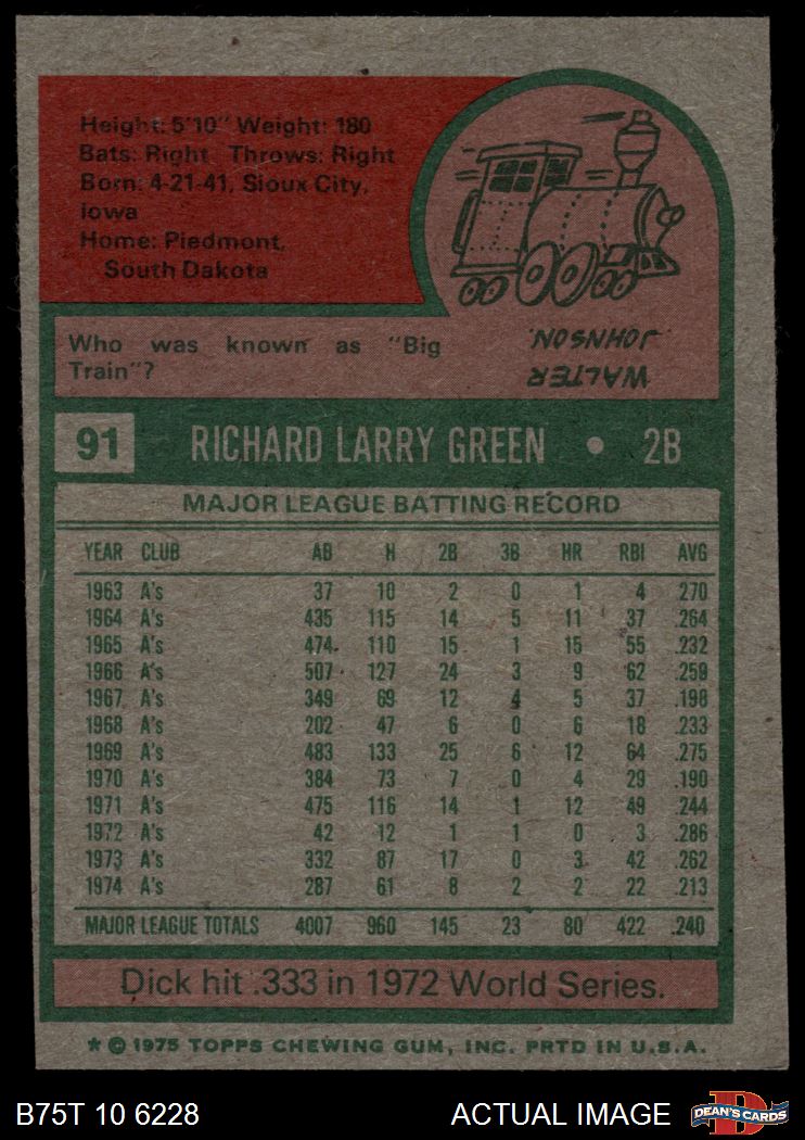 1975 Topps #91 Dick Green 5 - EX