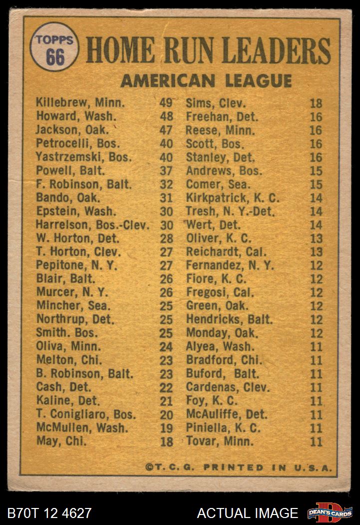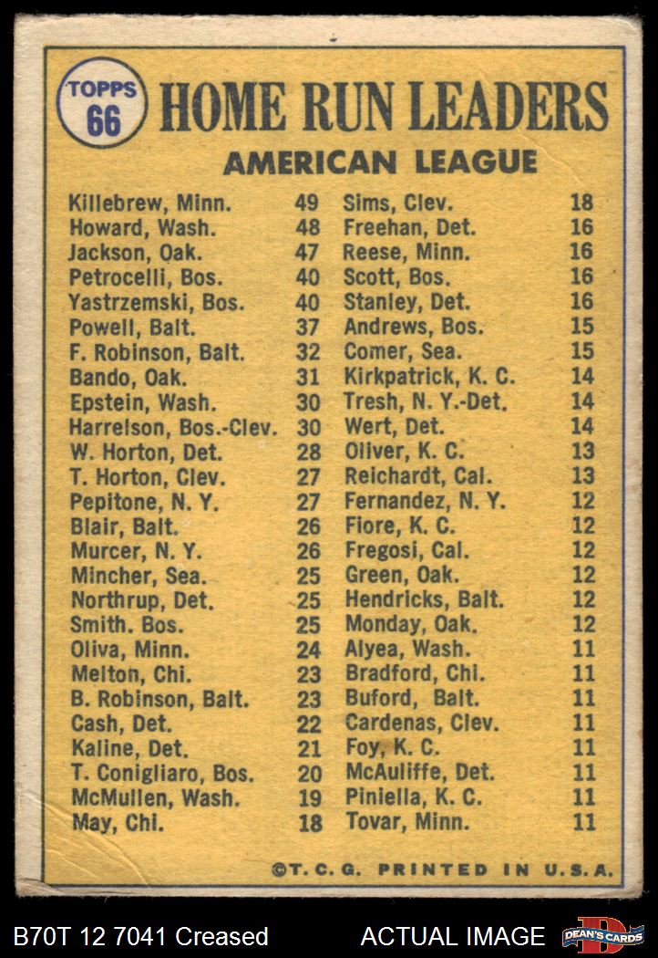 1970 Topps #66 - Reggie Jackson / Harmon Killebrew / Frank Howard AL HR Leaders 2 - GOOD