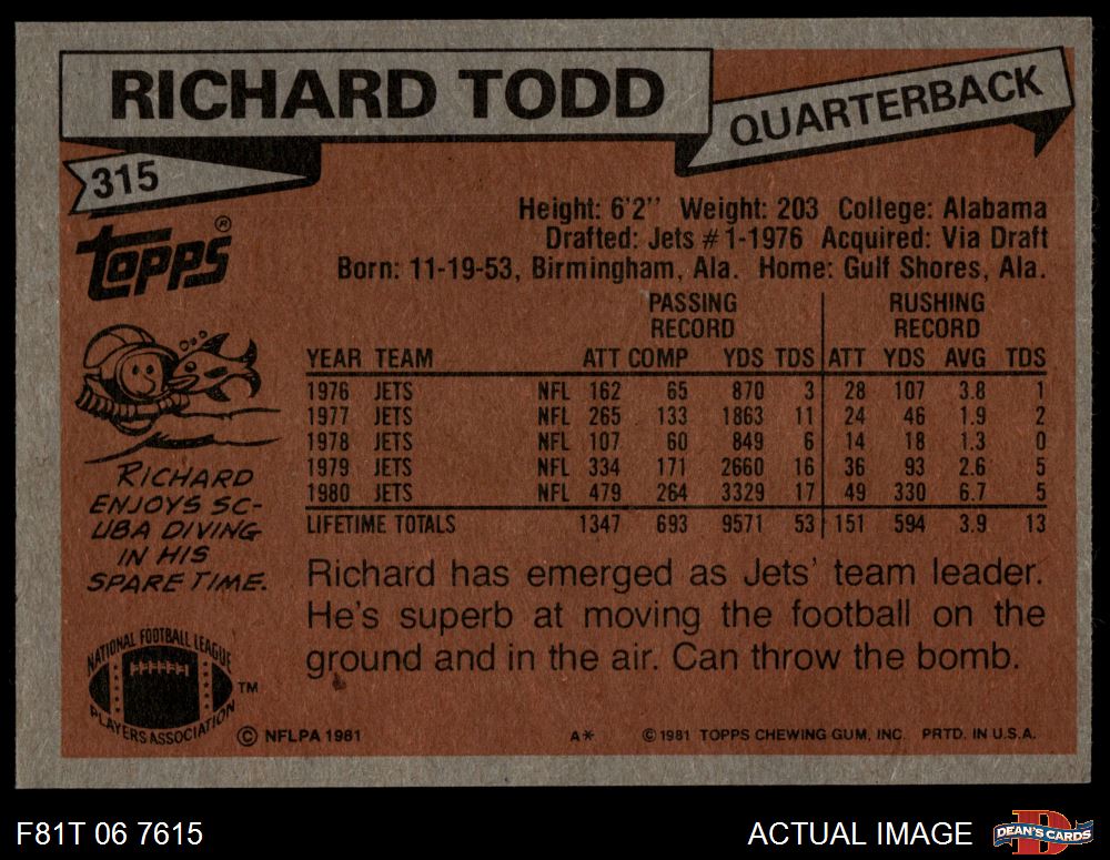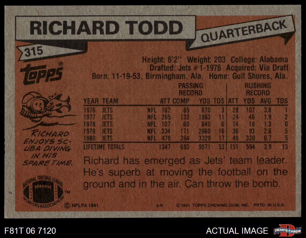 1981 Topps Football Cards (6,320 available)1981 Topps Jets (329 available)