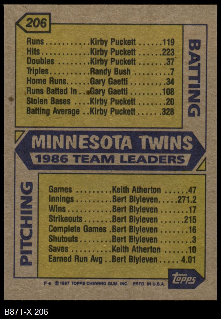 1987 Topps #206 Twins Leaders