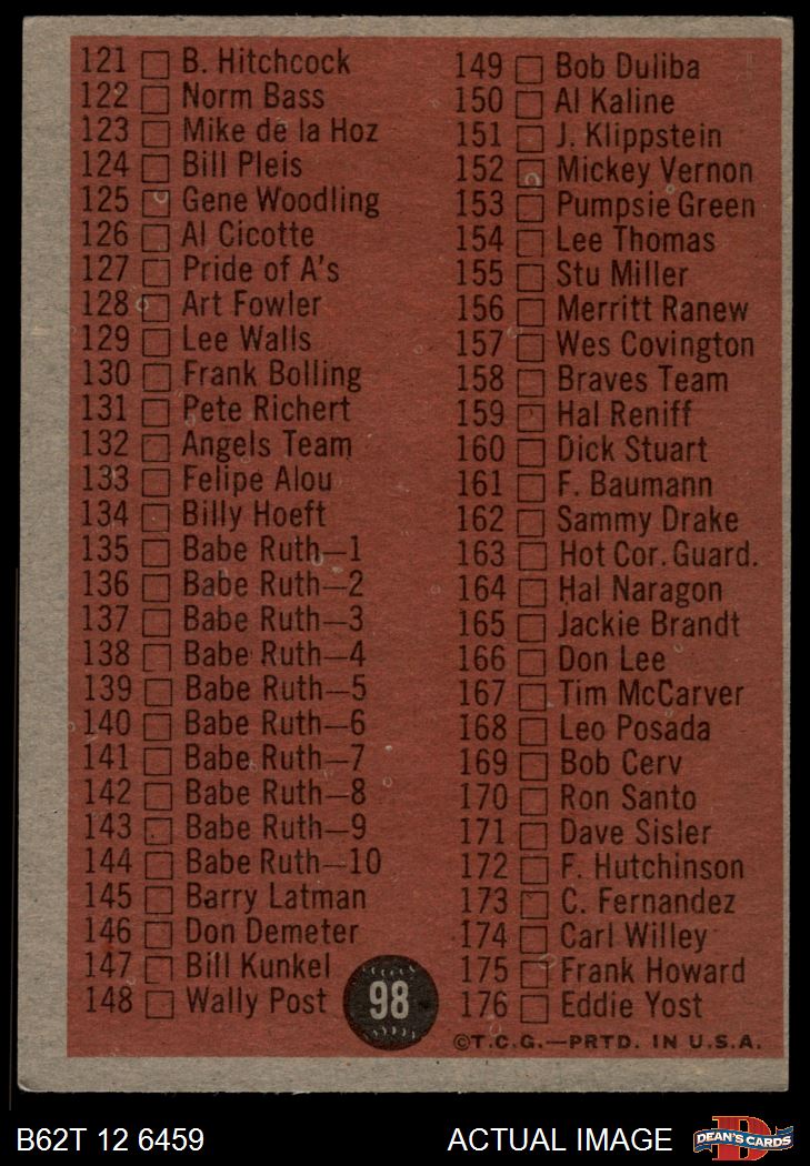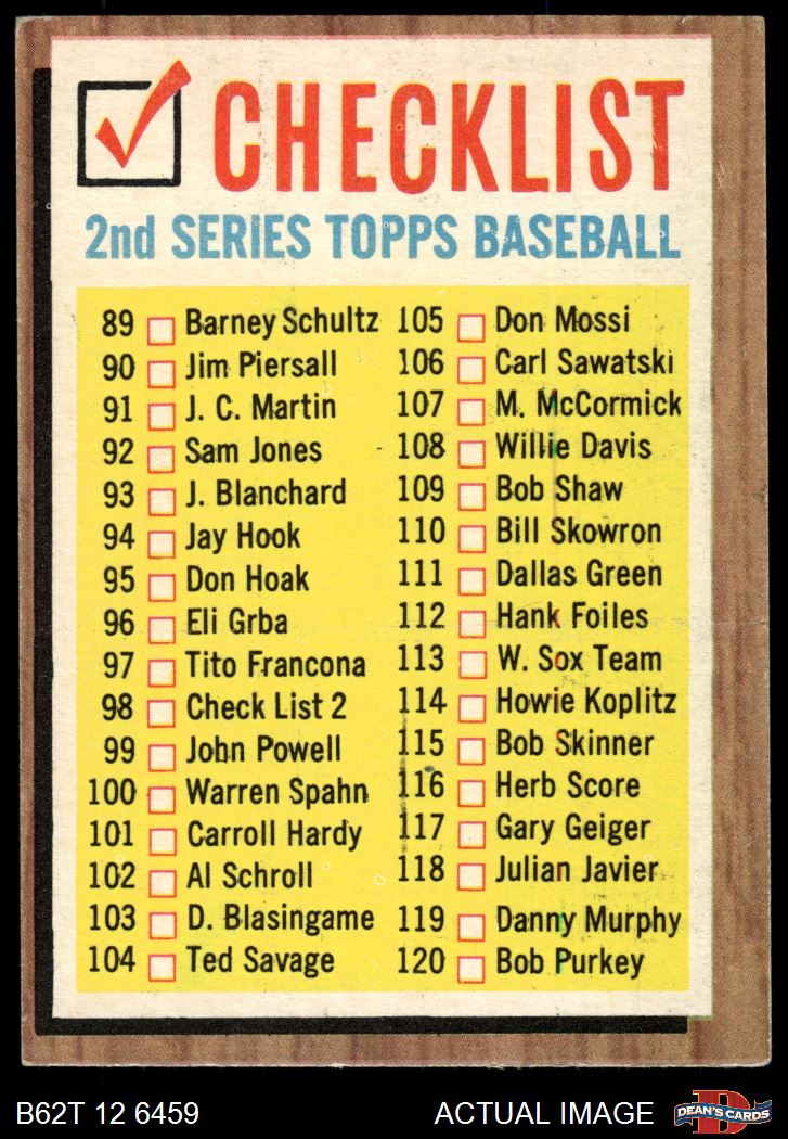 1962 Topps #98 LGT Checklist 2 2 - GOOD