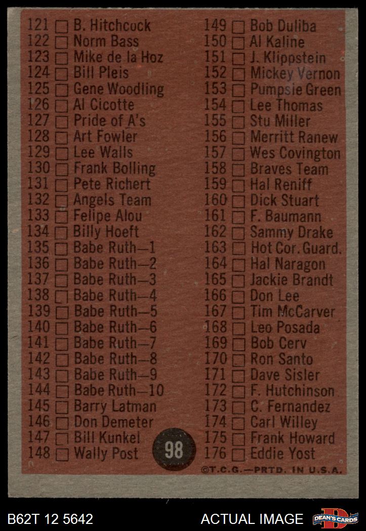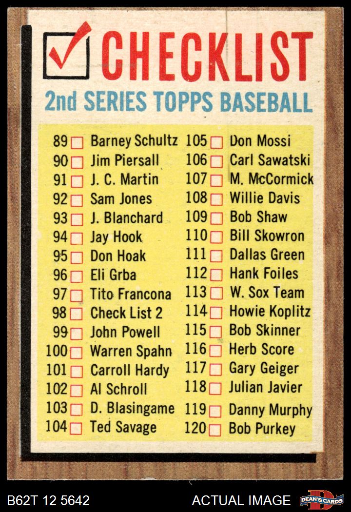 1962 Topps #98 LGT Checklist 2 4 - VG/EX