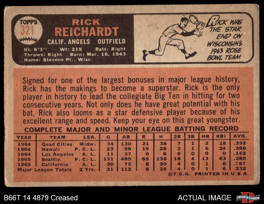 1966 Topps #321 Rick Reichardt 1 - POOR