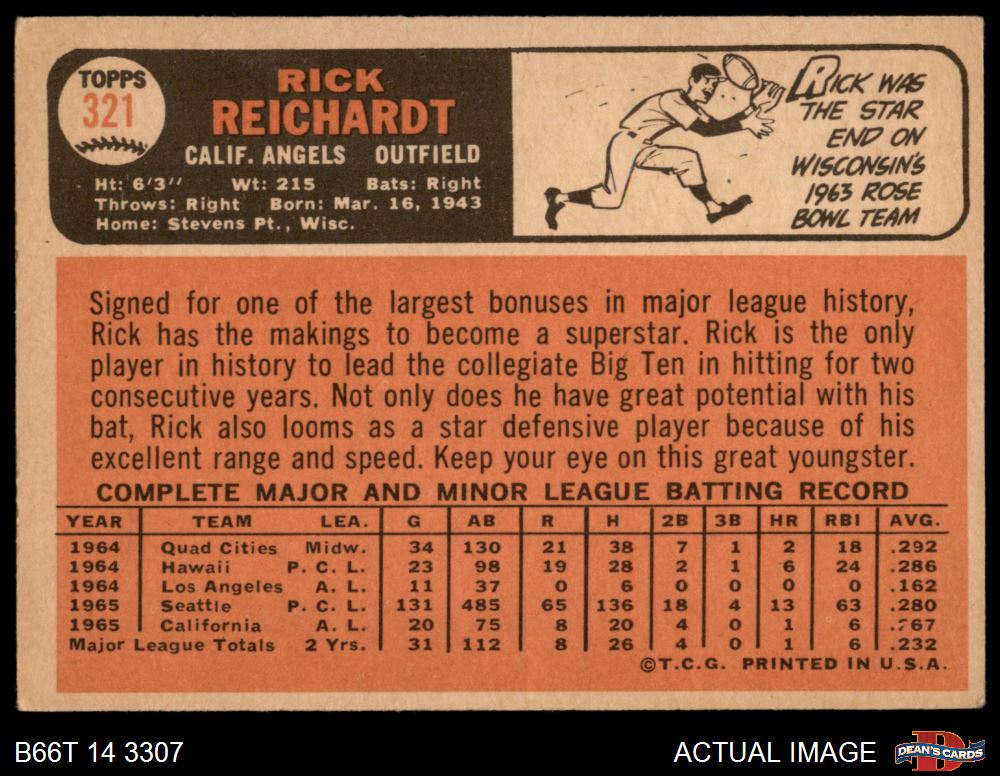 1966 Topps #321 Rick Reichardt 4 - VG/EX