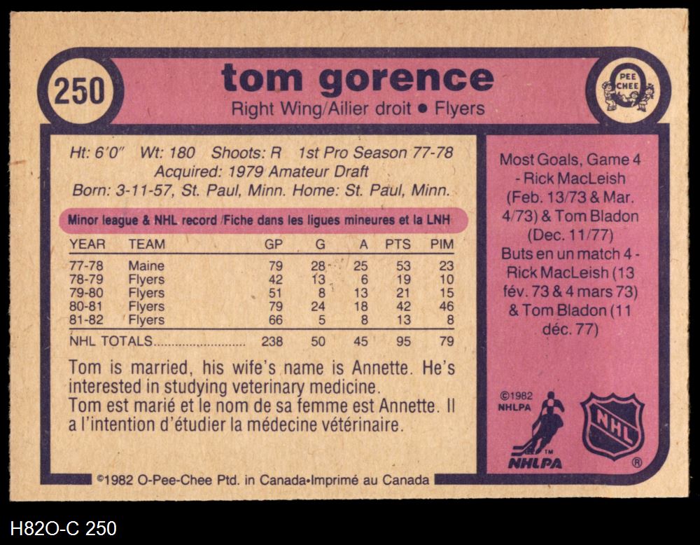 1982 O-Pee-Chee #250 Tom Gorence 8 - NM/MT