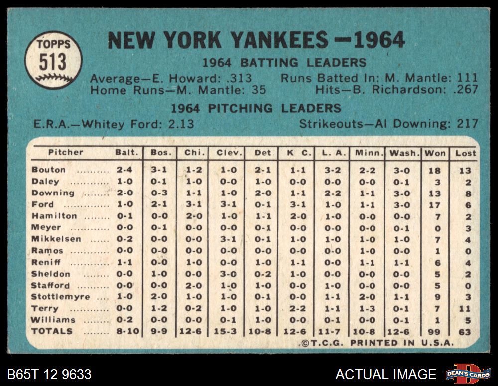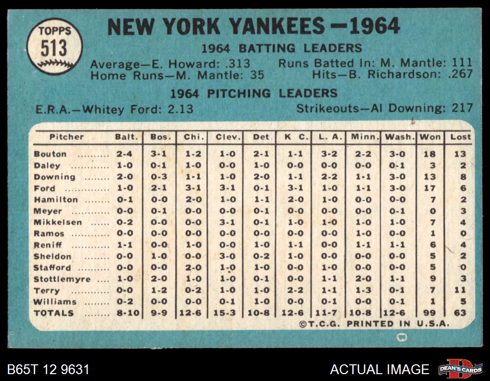 1965 Topps #513 Yankees Team 4 - VG/EX