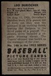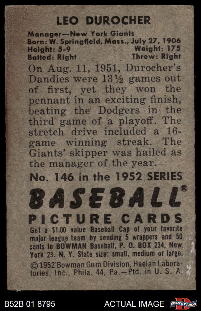 1952 Bowman #146 Leo Durocher 2 - GOOD
