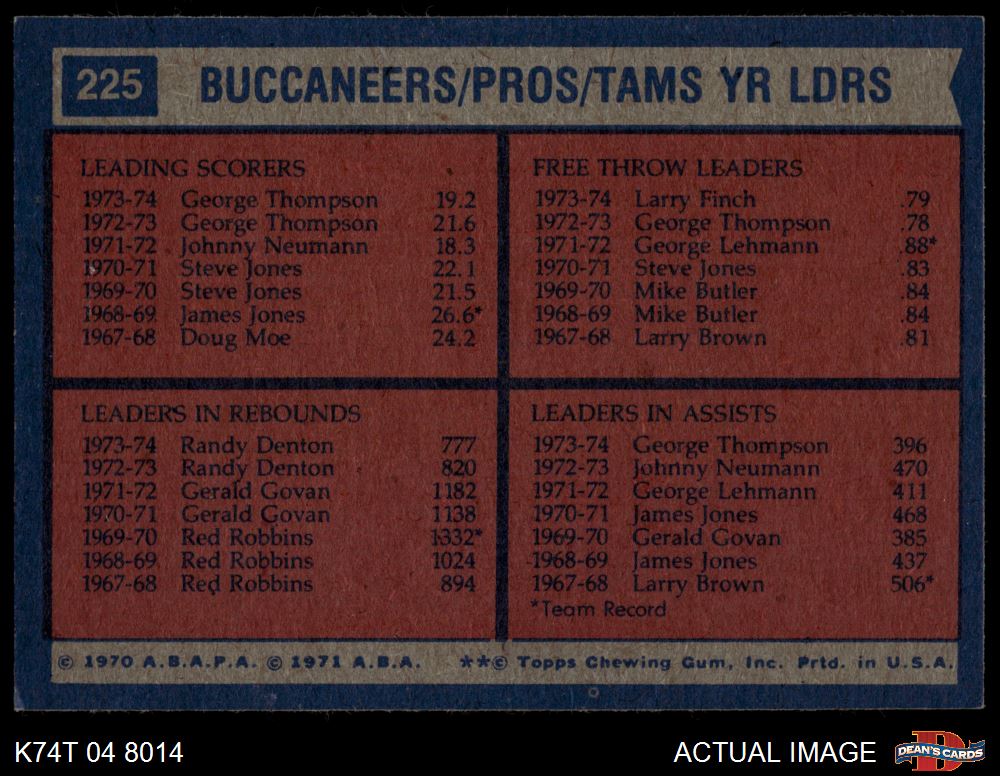 1974 Topps #225 - Larry Finch / George Thompson / Randy Denton Sounds (Pros) Leaders 6 - EX/MT