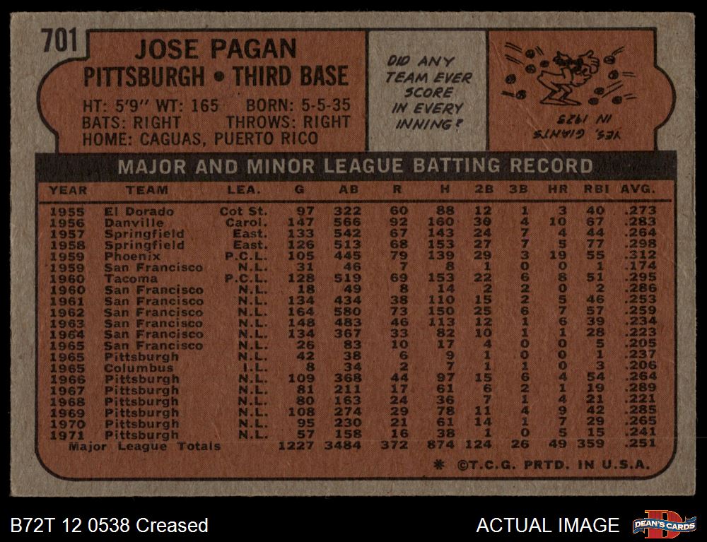 1972 Topps #701 Jose Pagan 2 - GOOD